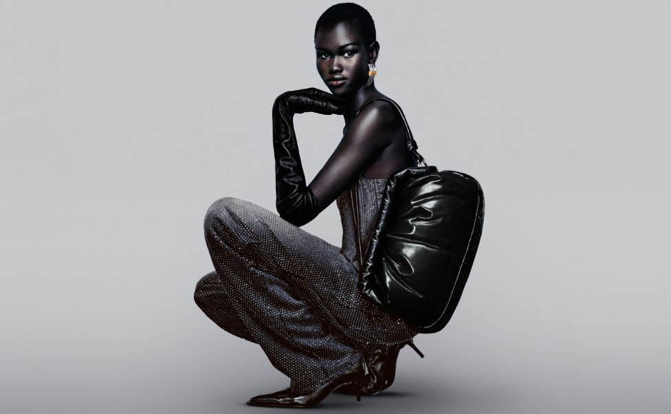 Key pieces are designed to cultivate a captive audience. For day, a tailored black maxi coat with a nipped-in waist hints at feminine allure and promises forever appeal, alongside a bright-white shirt punctuated with an oversized bow. For evening, low-slung jeans decorated with champagne-hued rhinestones and a co-ordinating jacket dazzle alongside a black A-line mini dress with a razor-sharp white collar. Accessories add a touch of gloss, including sleek nappa-leather boots and statement jewellery. So too a padded cushion-clutch bag, one of several favourite pieces making a welcome return from the H&M Studio archives, in this case reworked for autumn in soft black leather. The collection heroes durable, high-quality fabrics with the majority made from more sustainably sourced materials, including recycled polyester and Tencel.