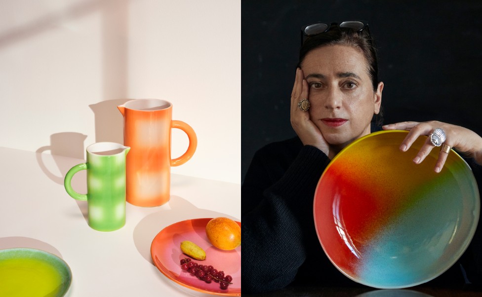 With gradient colour plays, bright hues, and out-of-focus graphics, India Mahdavi was inspired by the blinding colours you see when you close your eyes in front of the sun. This collection was conceived like a wind of optimism in a world of uncertainty.