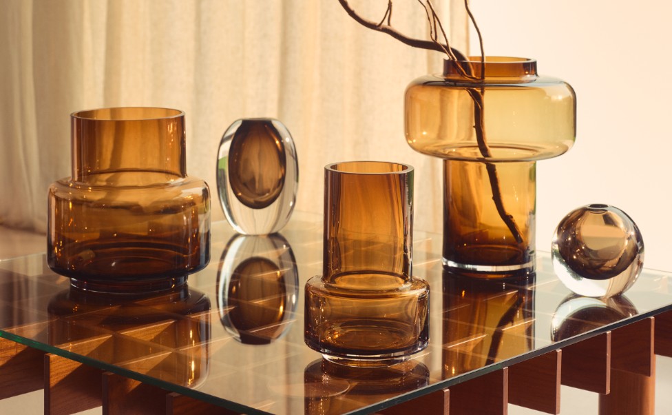 Every room in the new fall season is immersed in thought-out design pieces — from furniture, cushion covers, vases and bed linen to tableware. The trend centres on warm modernism, drawing inspiration from mid-century modern interiors and the vibrant ’70s design era. The theme of the collection features a harmonious blend of warm brown and honey tones, mixed with soft pinks and graphic black & white. We pair tactile soft textiles with coloured glass and glossy surfaces, embracing stripe hype and graphic modernistic patterns — a curated and decluttered fall, with objects that tell a story.